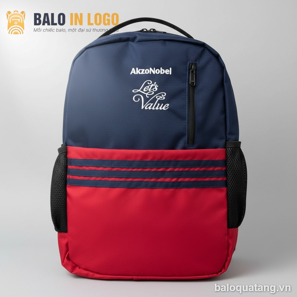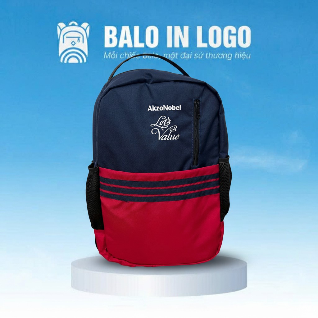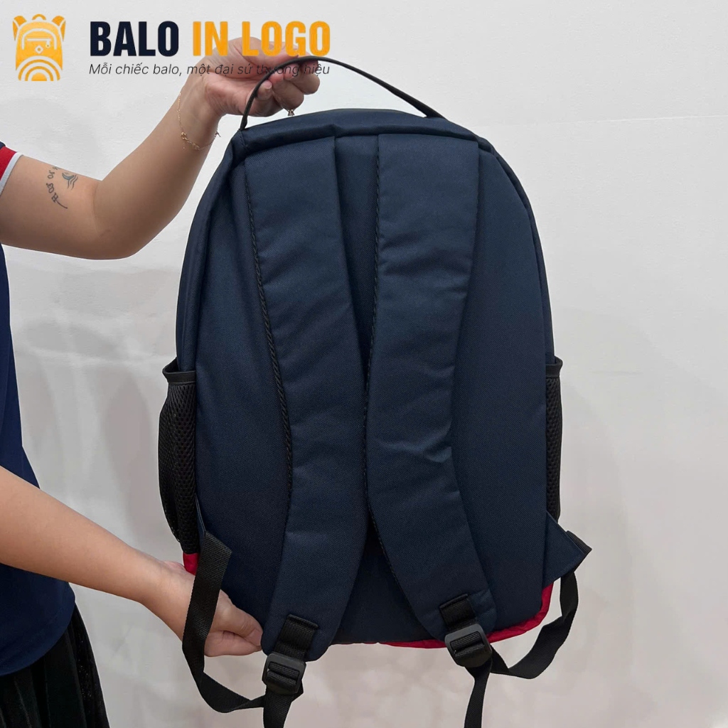 Balo laptop quà tặng LT-04 đóng vai trò là “đại sứ thương hiệu” di động, giúp logo doanh nghiệp hiện diện sắc nét trên mọi hành trình công tác của nhân sự. Sự kết hợp giữa phối màu xanh đỏ nổi bật và đường thêu tinh tế không chỉ thu hút sự chú ý mà còn gia tăng niềm tự hào, thắt chặt sợi dây gắn kết giữa người nhận và tổ chức.