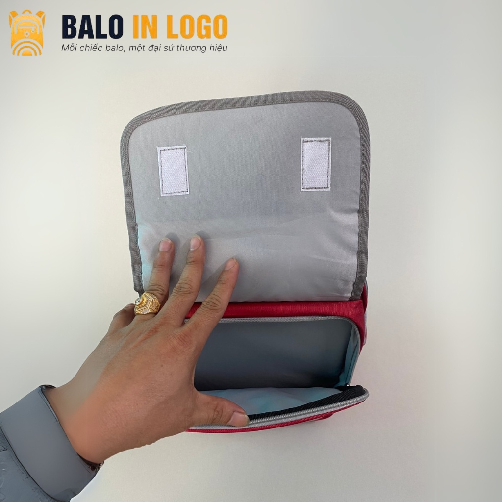 Balo học sinh quà tặng in logo HS-05 nổi bật với chất liệu vải 900 PU siêu bền, form hộp đứng chống gù 30x40x12cm. Thiết kế phối màu xám – đỏ năng động, logo thêu vi tính sắc nét, là giải pháp quà tặng trường học tối ưu chi phí và hiệu quả quảng bá.