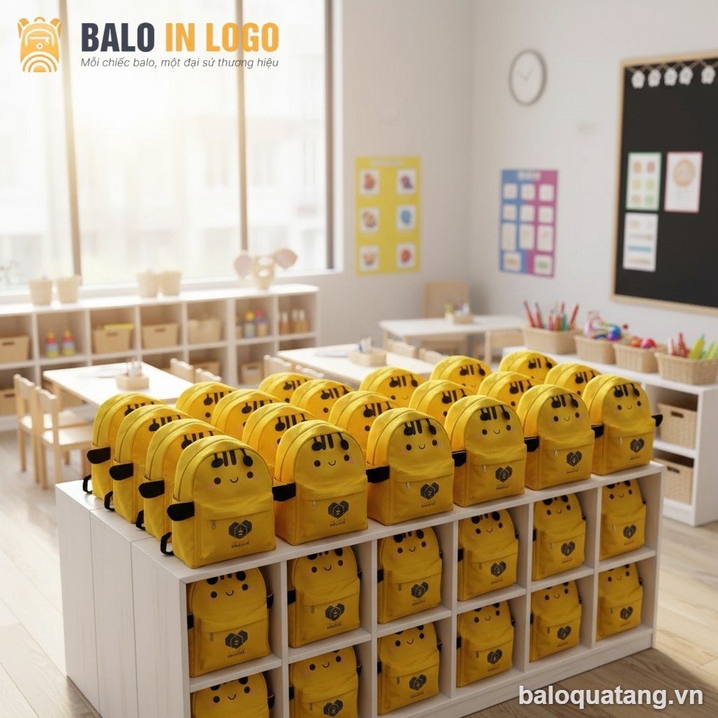 Balo mầm non quà tặng in logo họa tiết con ong vàng HS-03 là giải pháp quà tặng ý nghĩa dành cho các đơn vị giáo dục mầm non mong muốn thắt chặt sợi dây liên kết với phụ huynh. Với thiết kế sinh động và chất lượng vượt trội, sản phẩm góp phần chuẩn hóa bộ nhận diện thương hiệu chuyên nghiệp cho nhà trường.